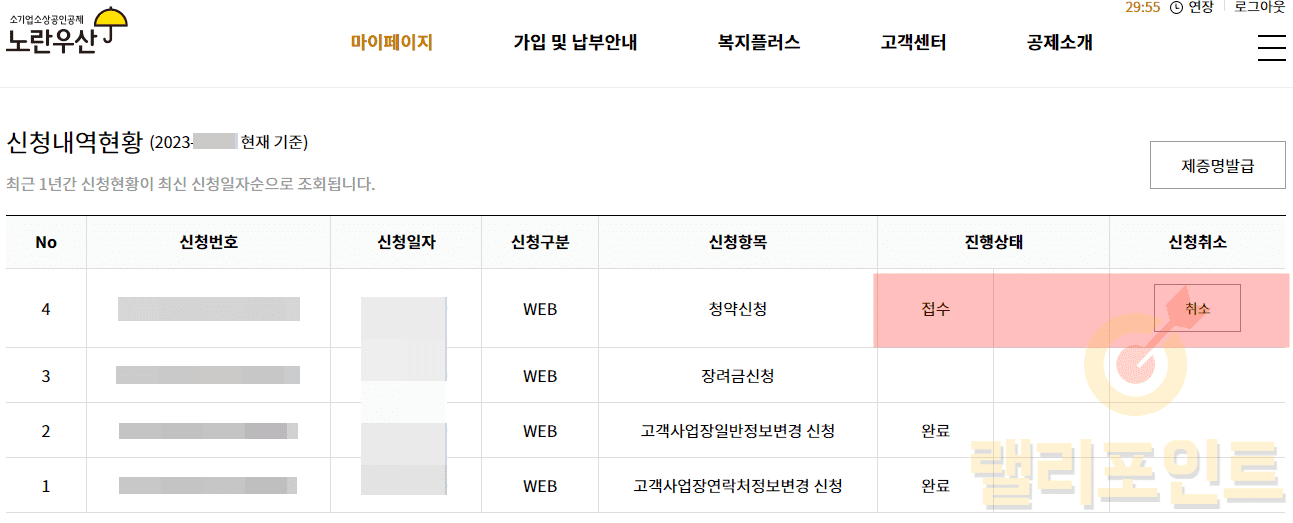 노란우산공제 가입 신청 내역 현황 확인 하는법