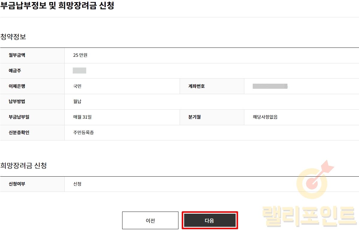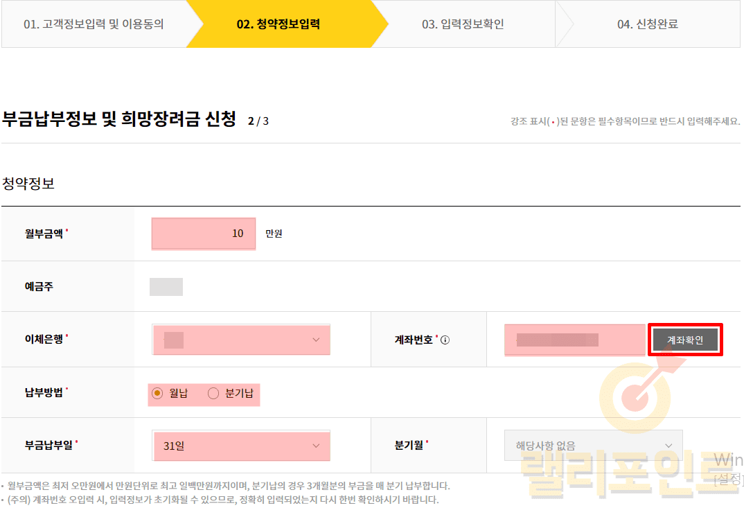 10. 청약정보입력에서 월납입금액 설정합니다.