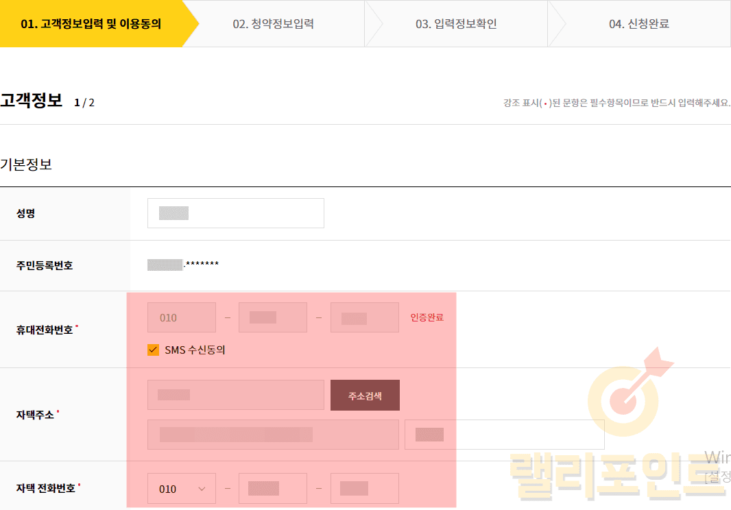 4. 기본정보에서 휴대전화번호, 자택주소, 자택전화번호를 기입합니다.