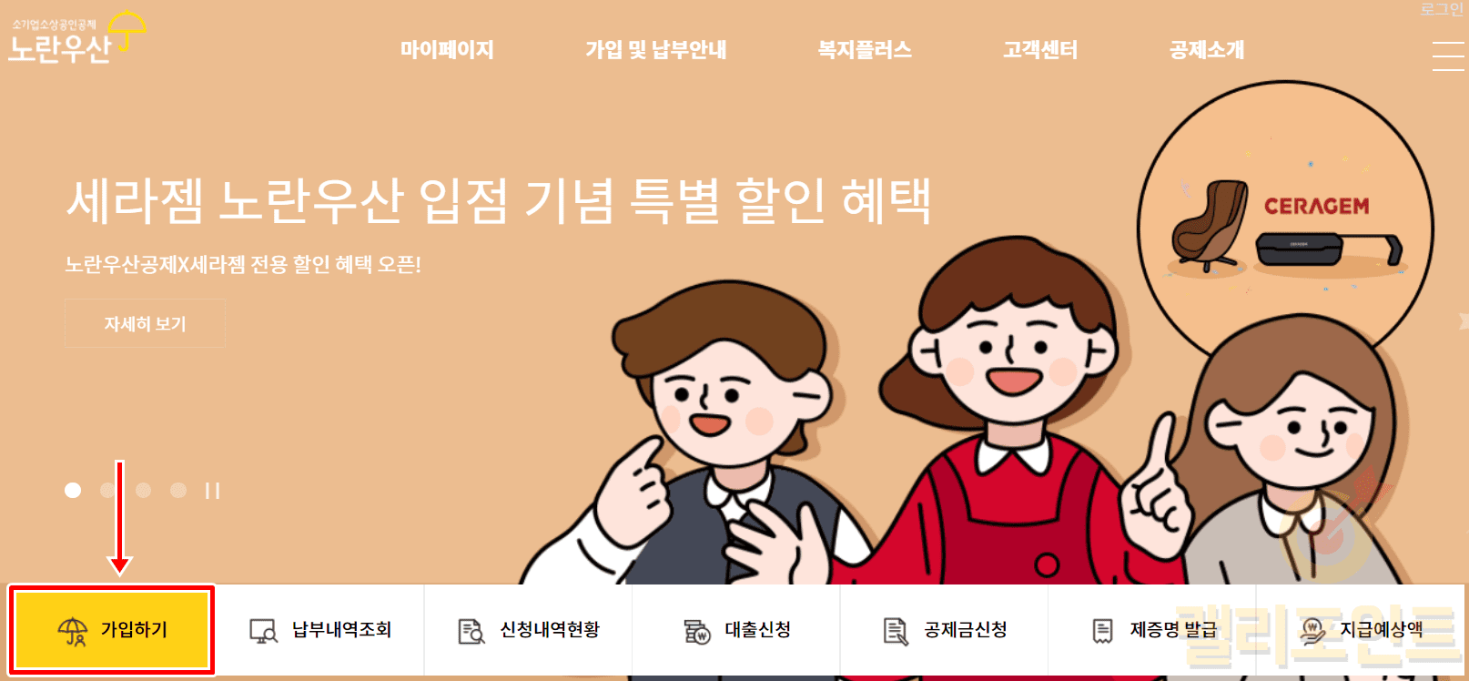1. 노란우산공제 가입 사이트에 접속합니다.