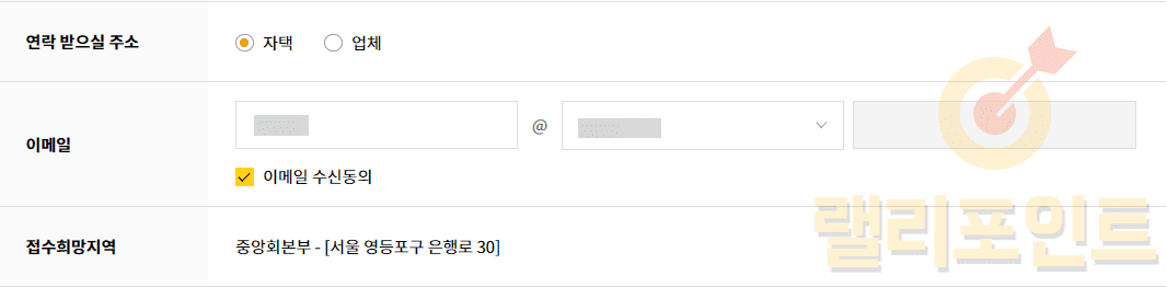 6. 연락받으실 주소를 설정하고 이메일을 기입합니다.