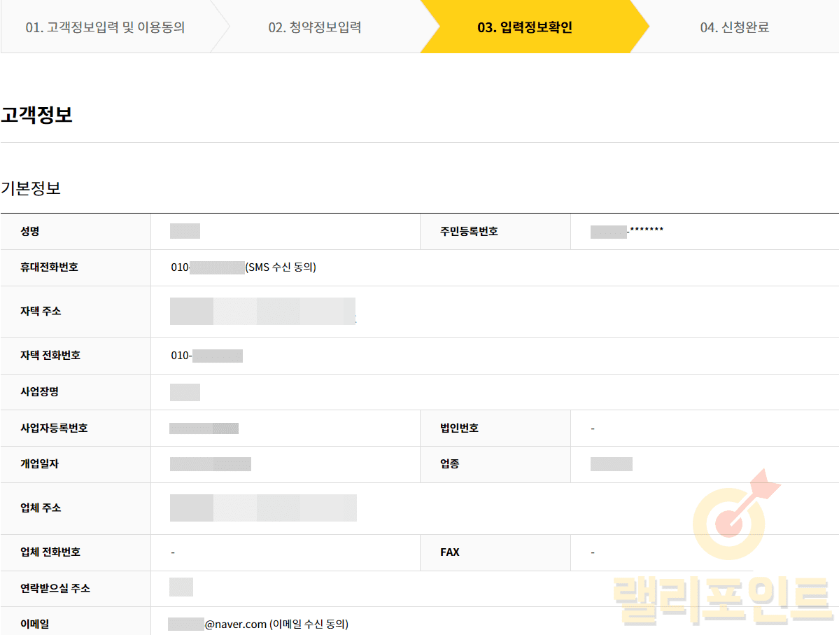 19. 입력정보확인에서 각 단계별 기입했던 정보들을 모두 확인합니다.