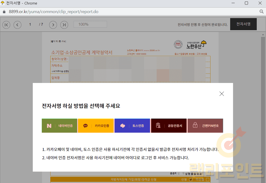 22. 전자서명하실 방법을 선택한 후 인증합니다.