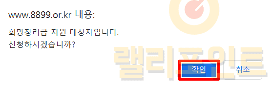 16. 희망장려금 지원 대상자가 맞다면 확인을 클릭하여 신청합니다.