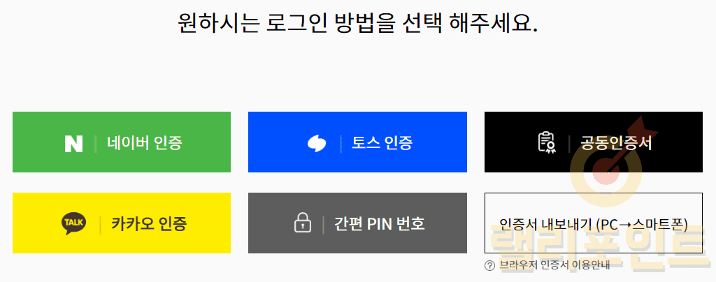 3. 원하시는 로그인 방법을 선택하여 로그인합니다.