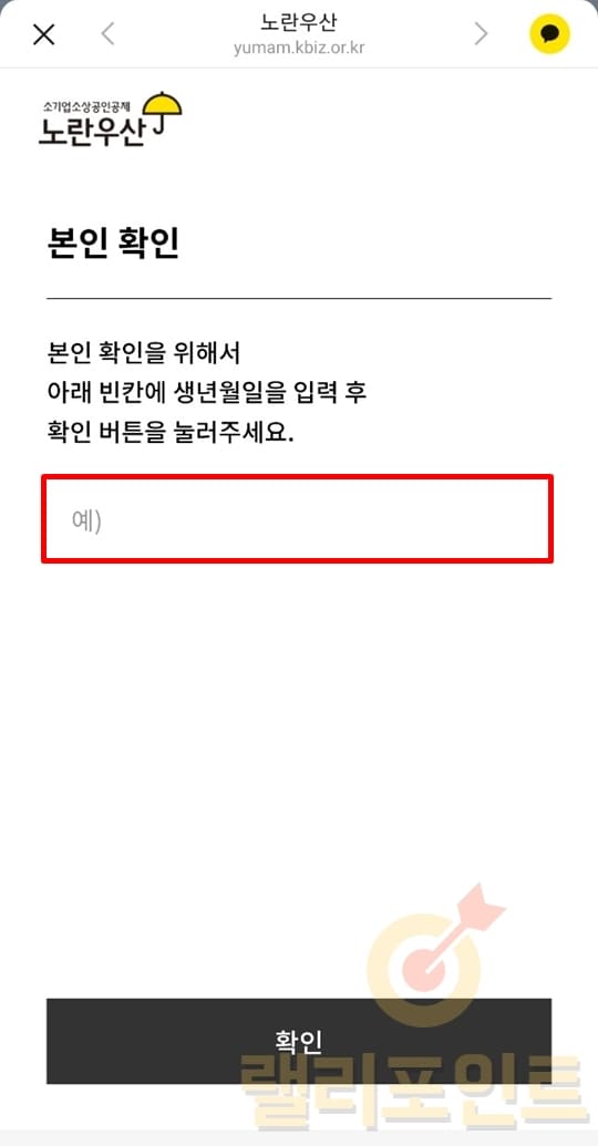 나의 생년월일을 입력하고 확인을 누르면 현재 가입된 노란우산의 계약청약서를 조회할 수 있습니다