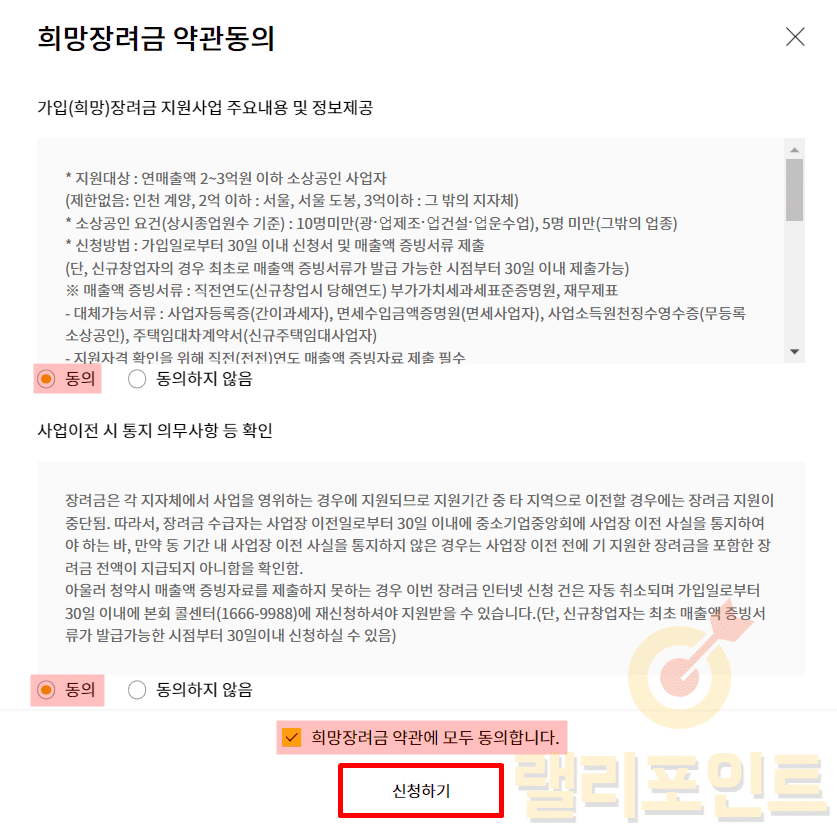17. 모두 동의에 체크해주시고 신청하기를 누릅니다.
