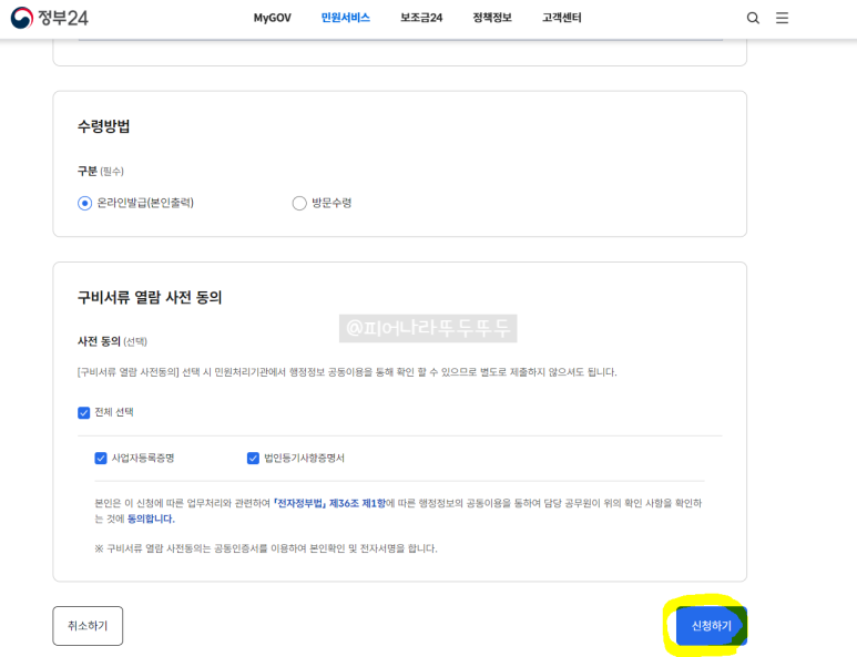 했는데 구비서류 열람 사전동의를 하면 알아서 보고 신청해주시는것인가보다.