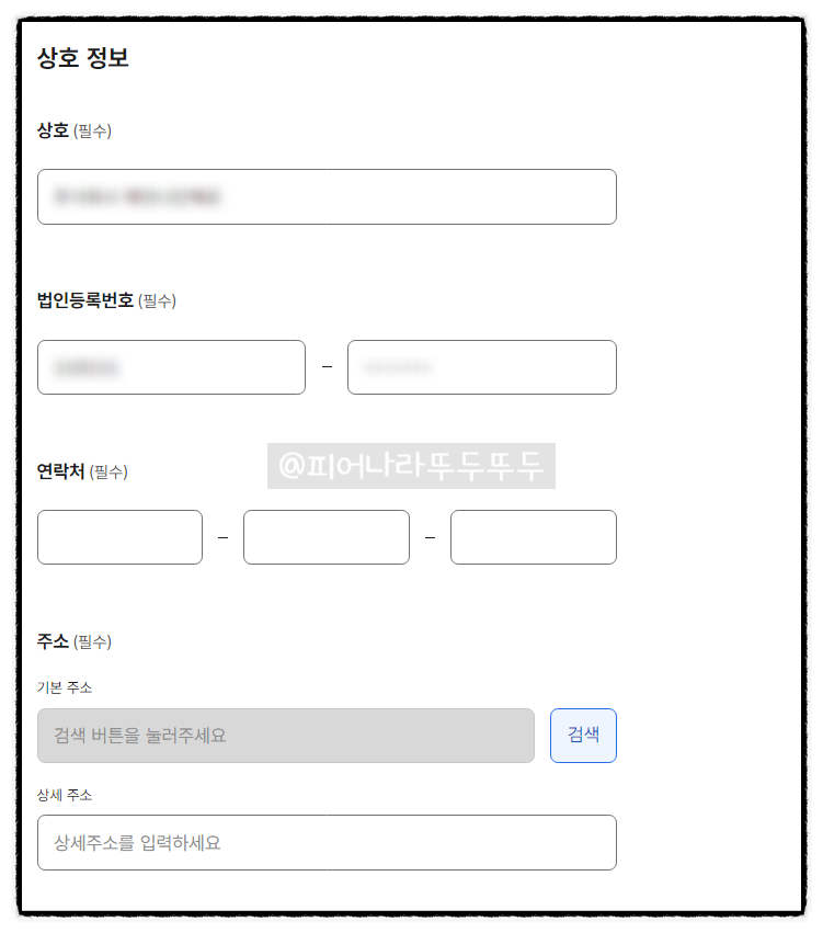 그리고 대표자 정보도 이름/주소 / 번호를 입력했다!