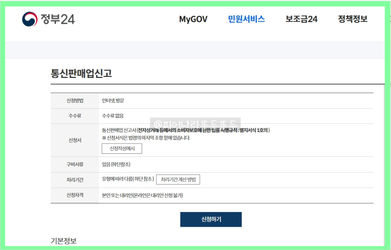 그런데, 정부 24에서 통신판매업을 신청할 때는