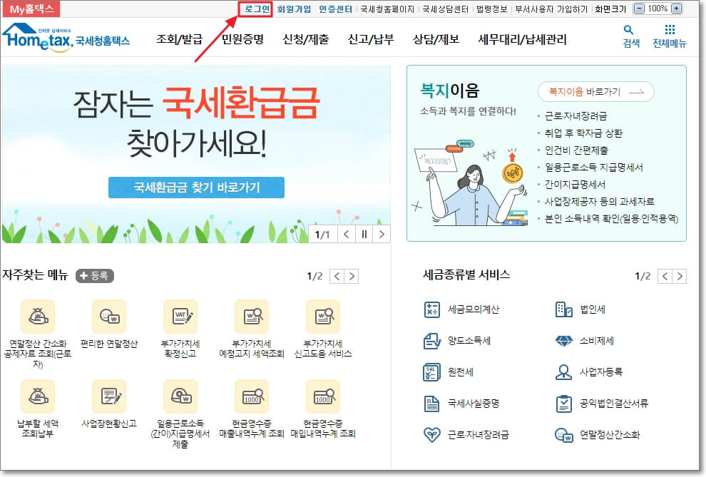 먼저, 국세청 홈택스에 접속합니다.