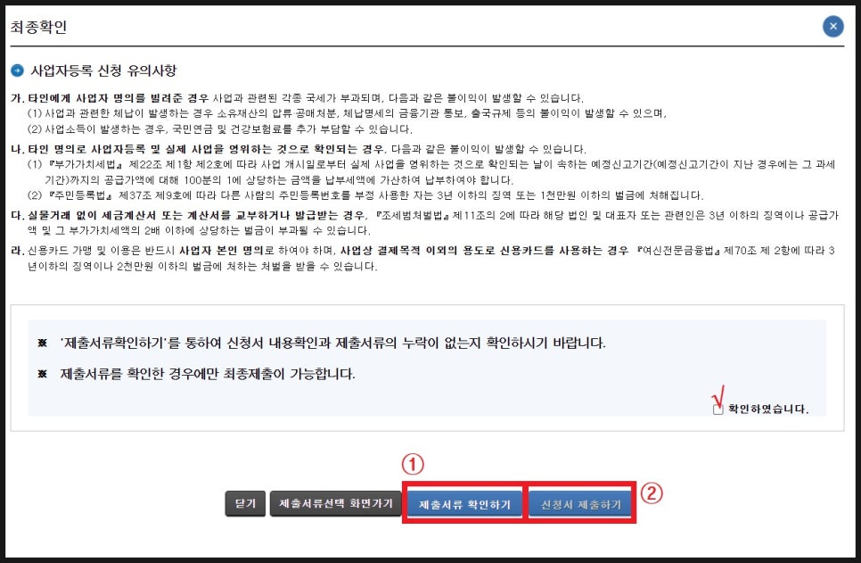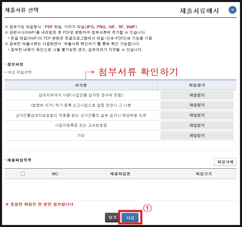 그리고 *업종추가하면 항상 제출서류 ① [확인하기] 눌러줘야 해요.