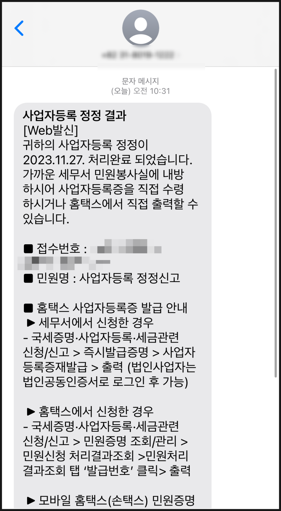‘정정 완료 문자’ 받자마자 홈택스에서 확인해줬어요.