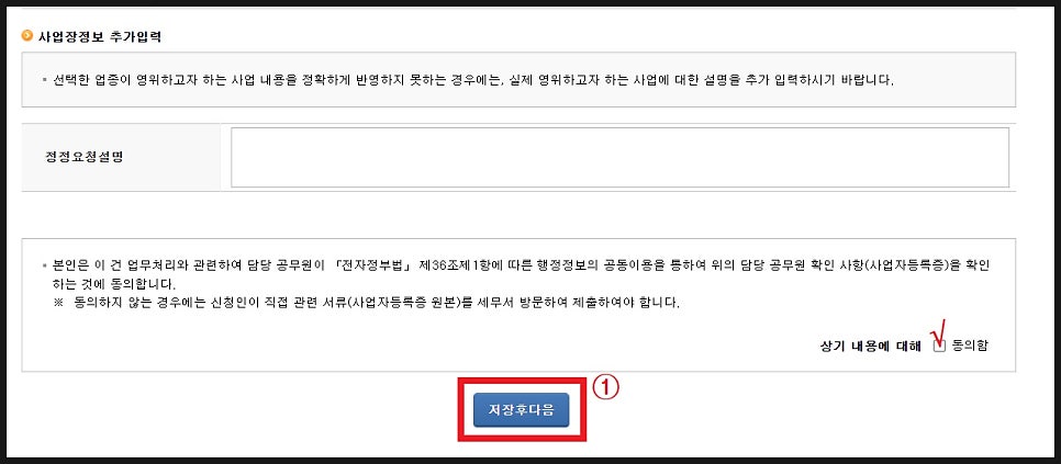 업종 추가하려는 사업자 번호가 맞는지 확인만 해주시고,