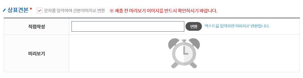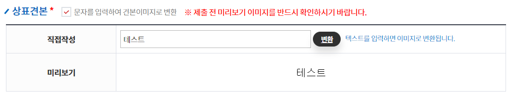직접작성 부분에 상표명 입력 > 변환 버튼 클릭 > 미리보기 확인