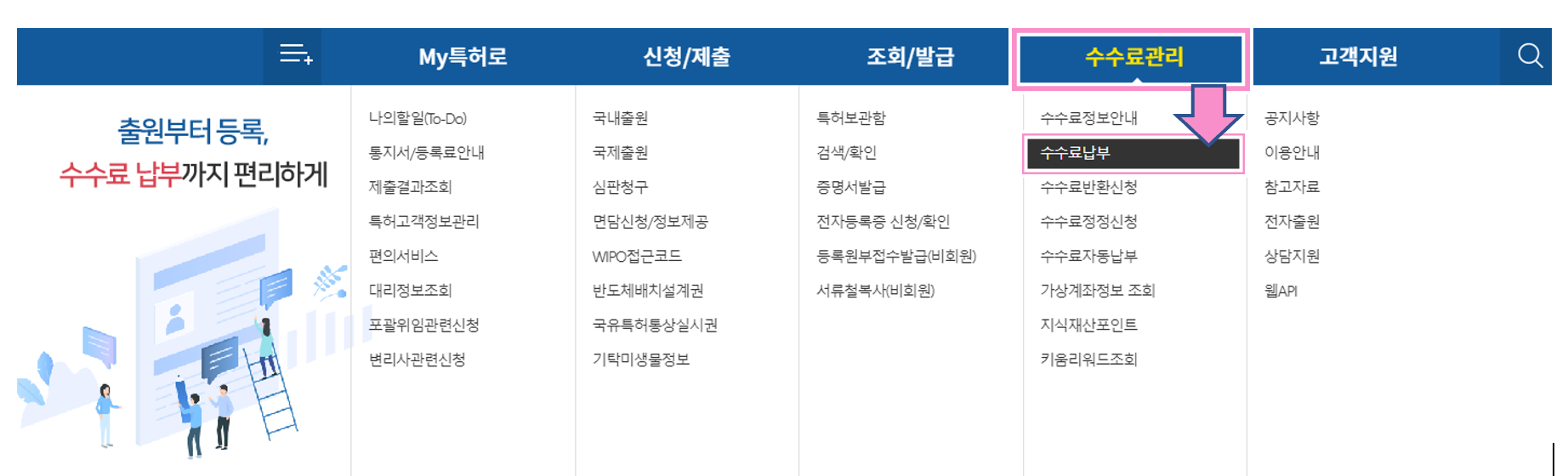 28. '특허수수료' 선택 > 검색