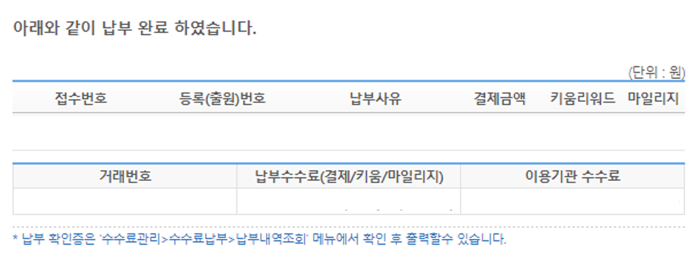 결제 완료 후 납부내역을 조회하면 납부가 완료된 것을 확인할 수 있다.