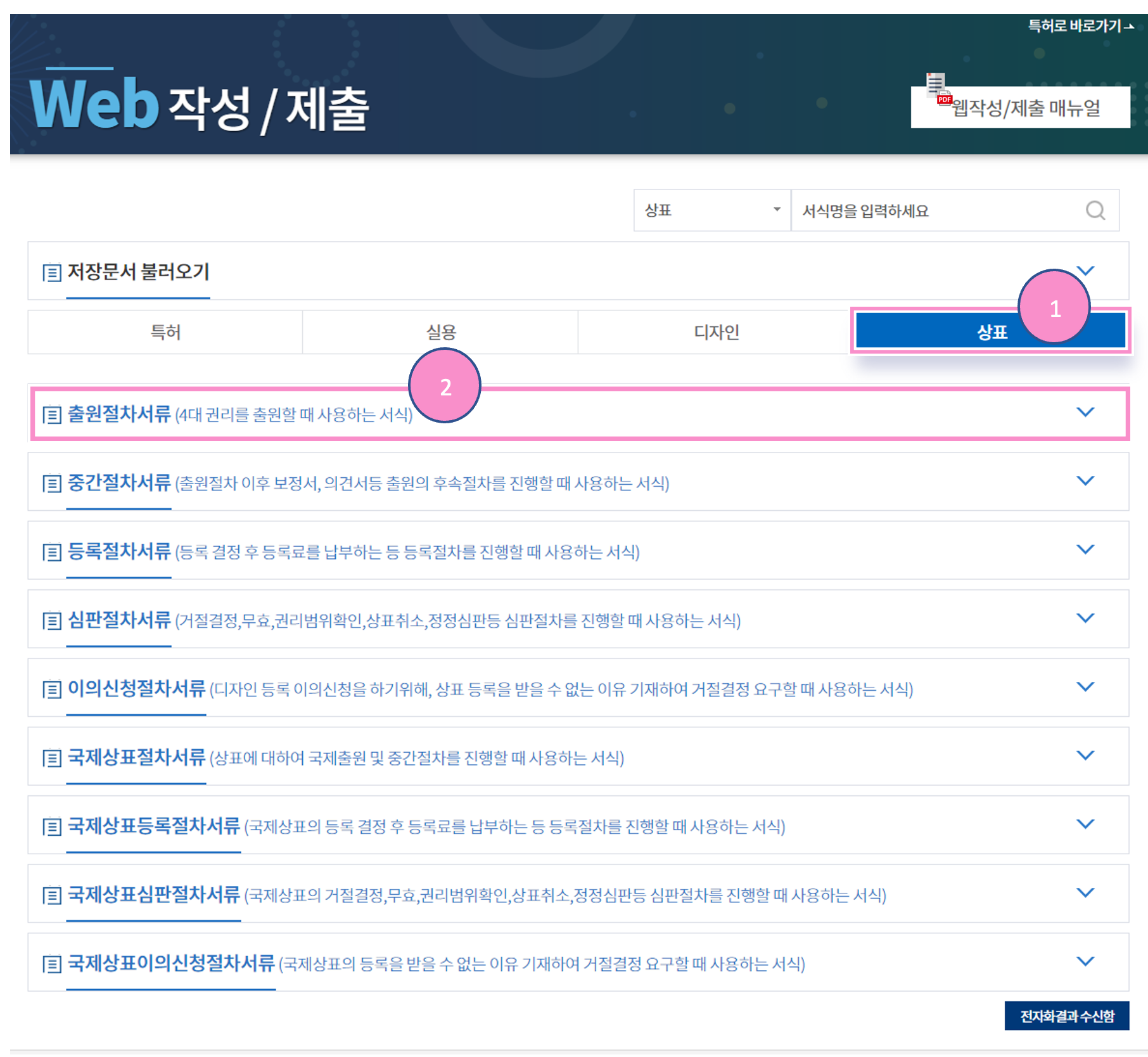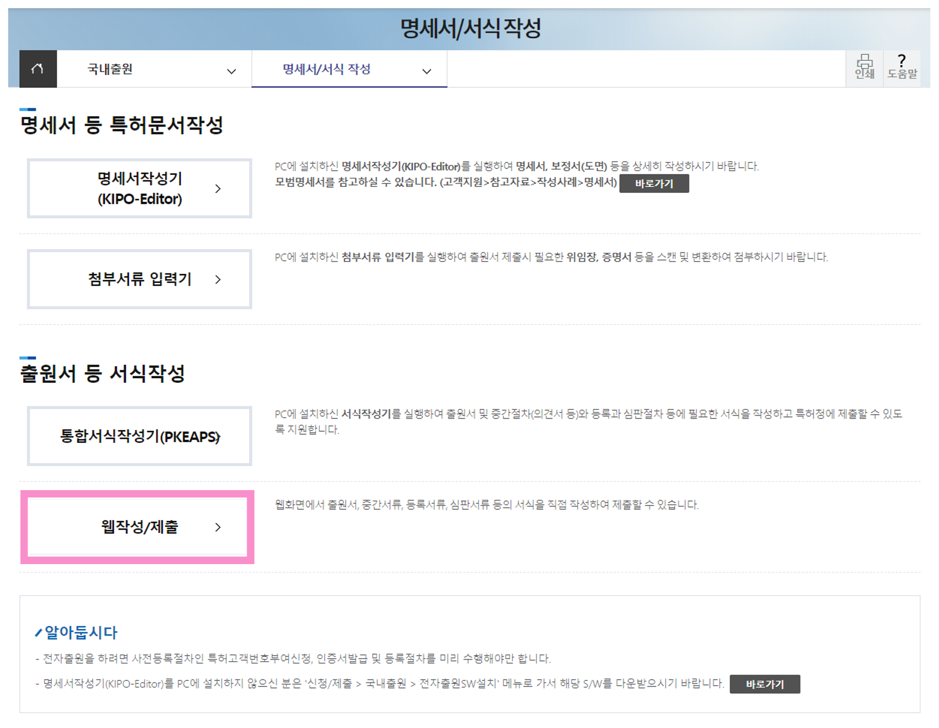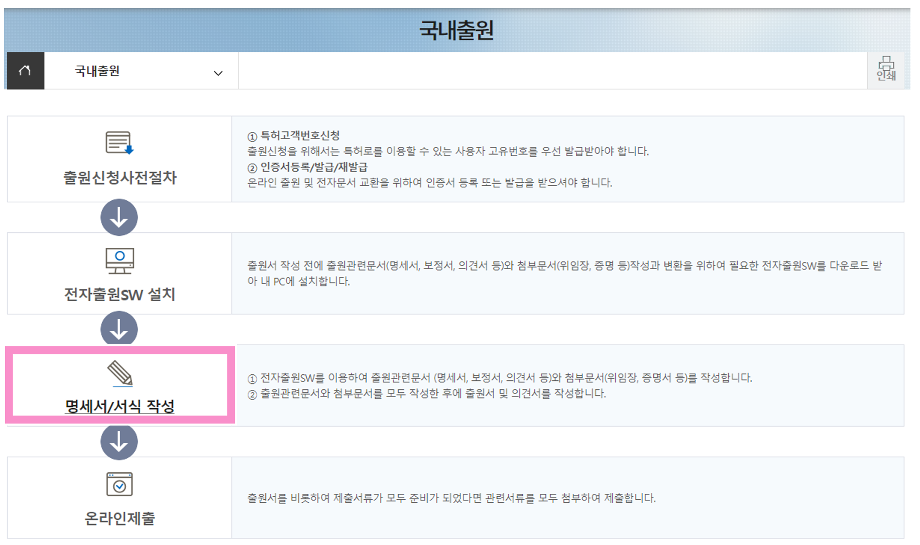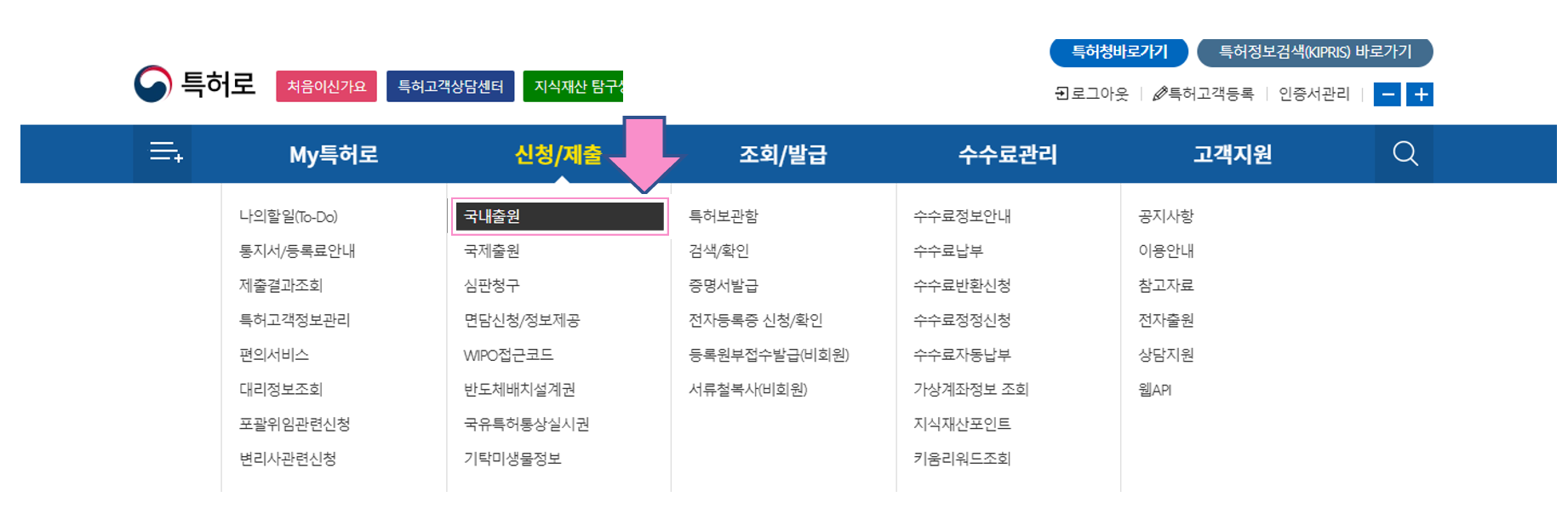 3. 신청/체출 > 국내출원