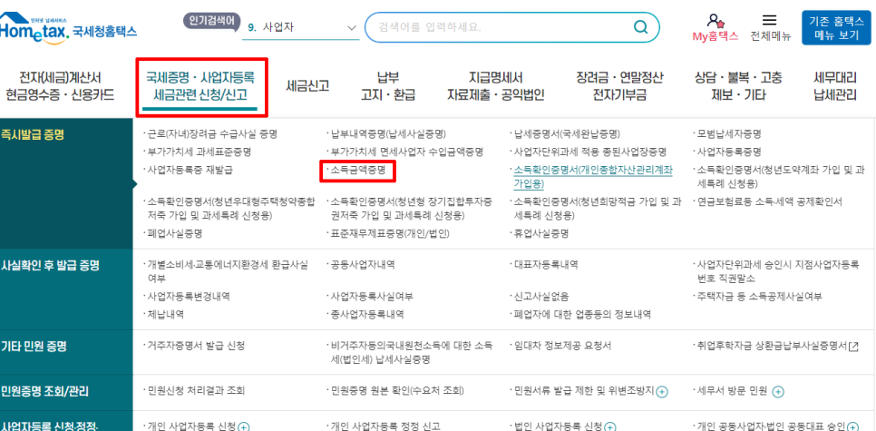 홈택스 소득금액증명원 발급 방법