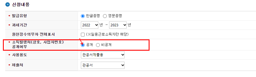 소득발생처 공개여부는 공개로 해주세요