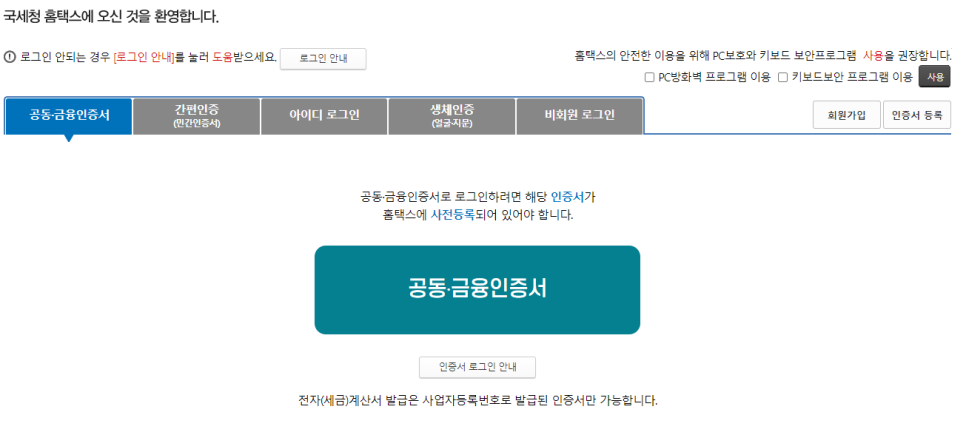 그리고 공동인증서, 금융인증서, 간편 인증 등을 통해 로그인한다.