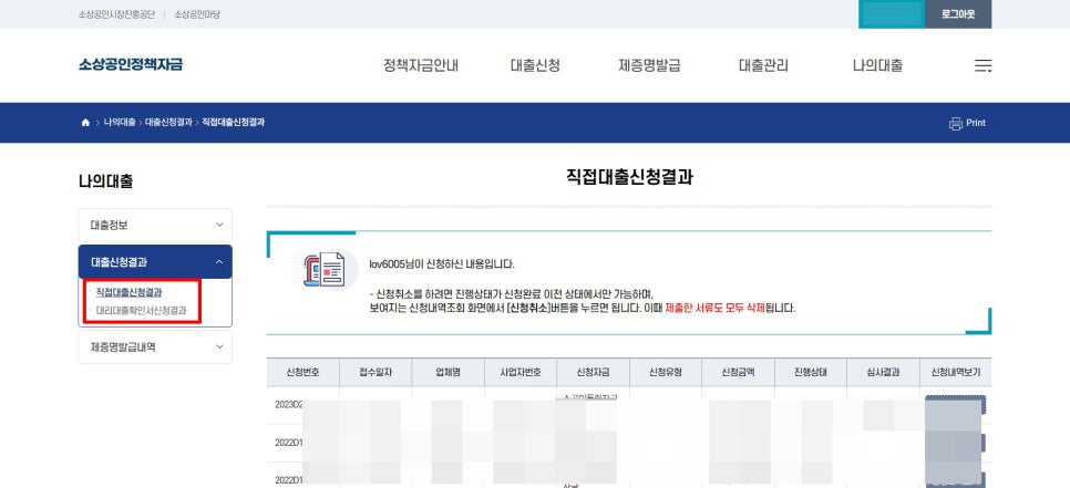 직접대출 신청결과
