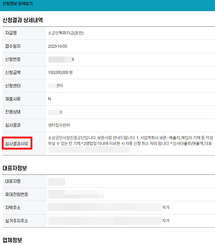 심사결과사유- 반려사유 확인 후 캡쳐하신 다음에 보내주시면 됩니다-:)