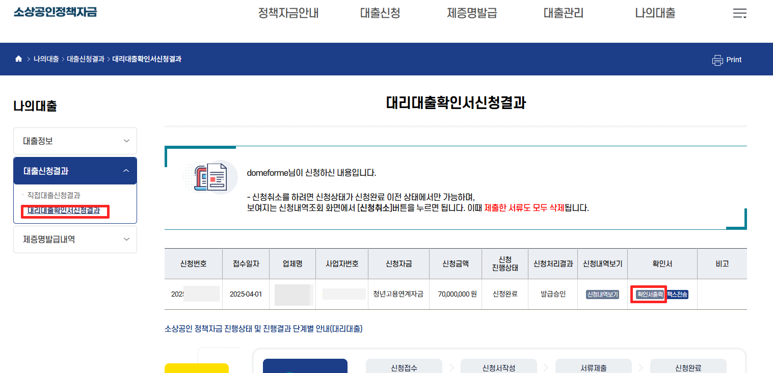 소상공인정책자금소상공인정책자금소상공인정책자금 로그인 해주세요.나의대출 - 대출신청결과 대출신청결과에서 - 대리대출확인서신청결과확인서출력 선택해주세요!확인출력하시면 됩니다-!저장하신 후 PDF파일을 카톡방에 올려주세요 :)