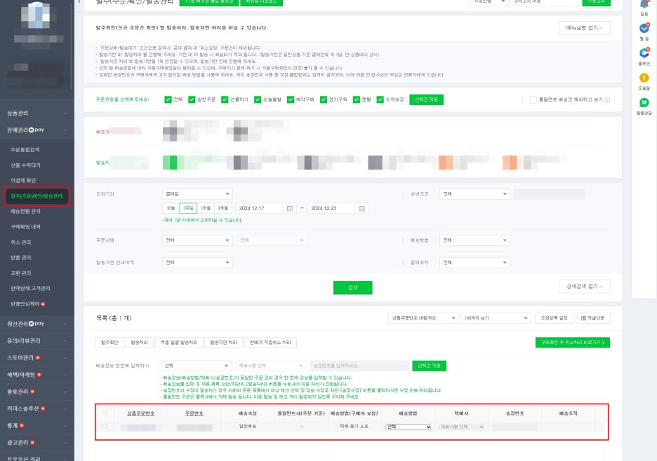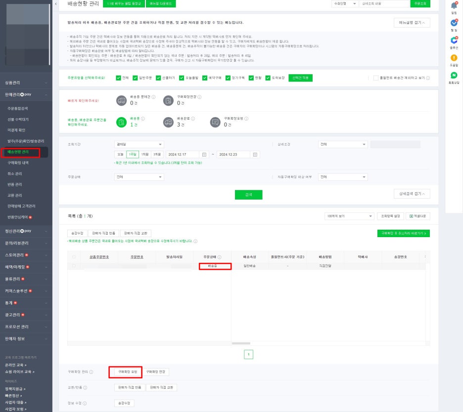 판매관리 배송현황관리 들어가보시면 배송중 으로 확인됩니다.