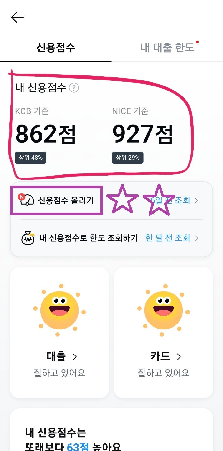 1분만에 카카오뱅크에서 신용점수 올리기! 조금전에 카카오뱅크에서 내 신용정보가 바뀌었다는 메시지를 받...