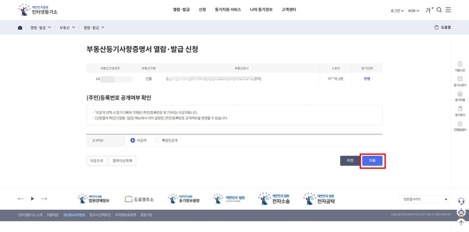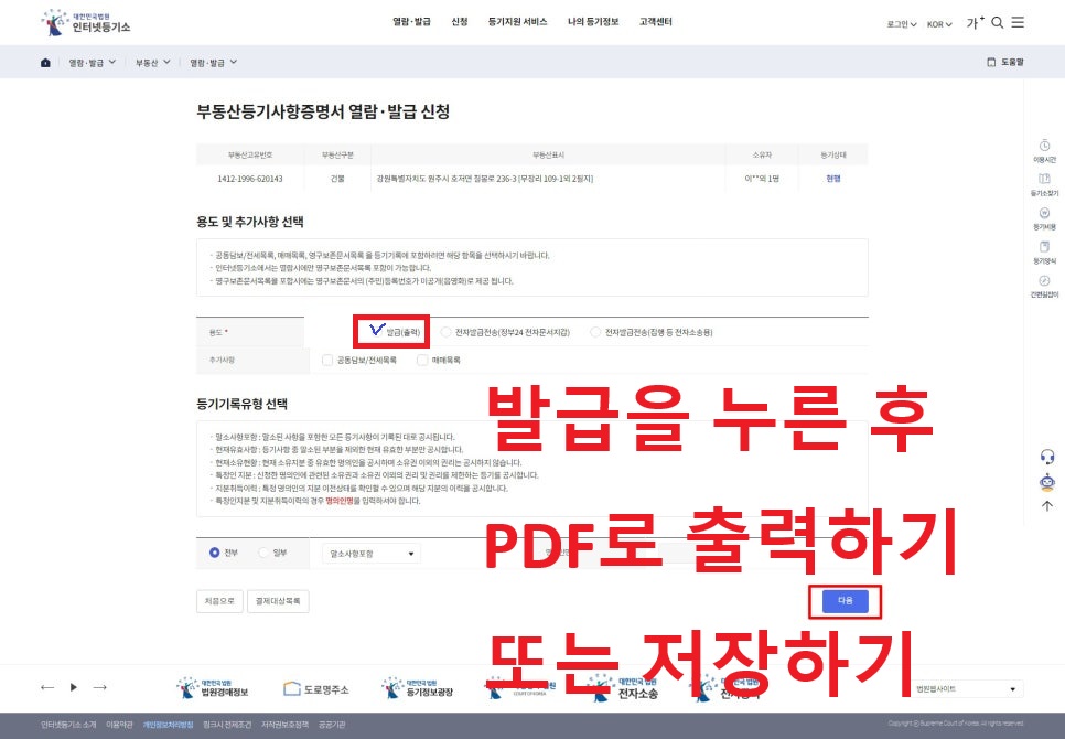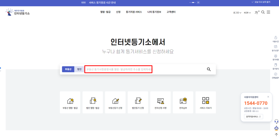 인터넷 등기소 들어가주세요-!