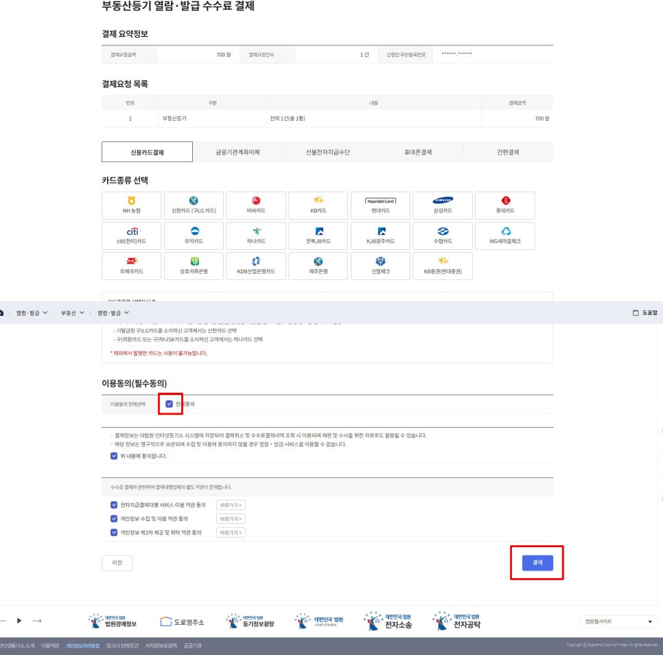 전체 동의 후 결제