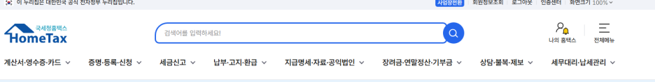 국세청 홈택스 들어가셔서 로그인 진행해주세요.