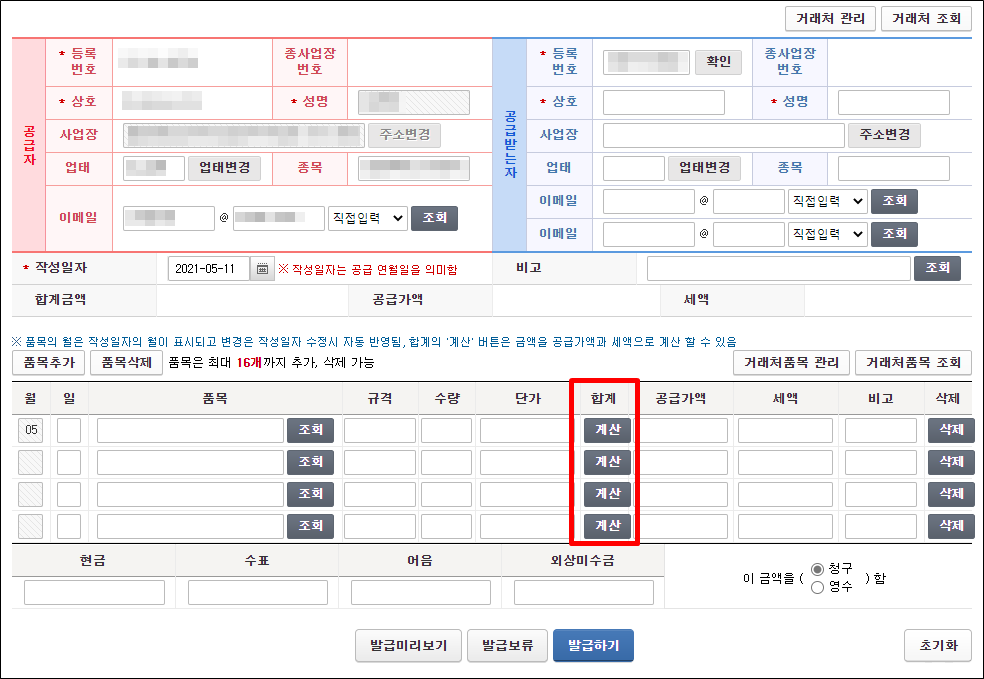 전자 세금 계산서 발행 방법