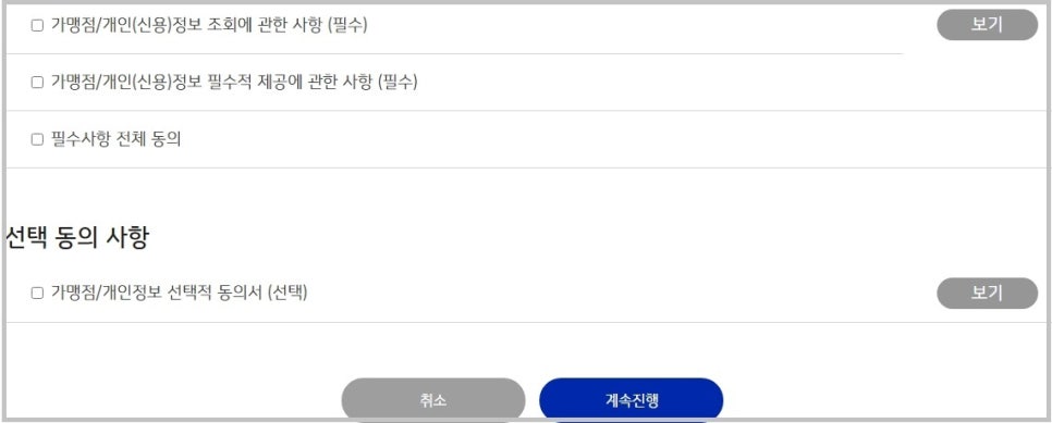 이제 본격적으로 제로페이 가맹점 신청방법에 따른 가맹을 신청을 해보도록 하겠습니다. 첫번째로 약관 이용 동의 절차를 진행합니다.