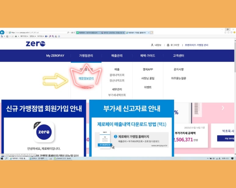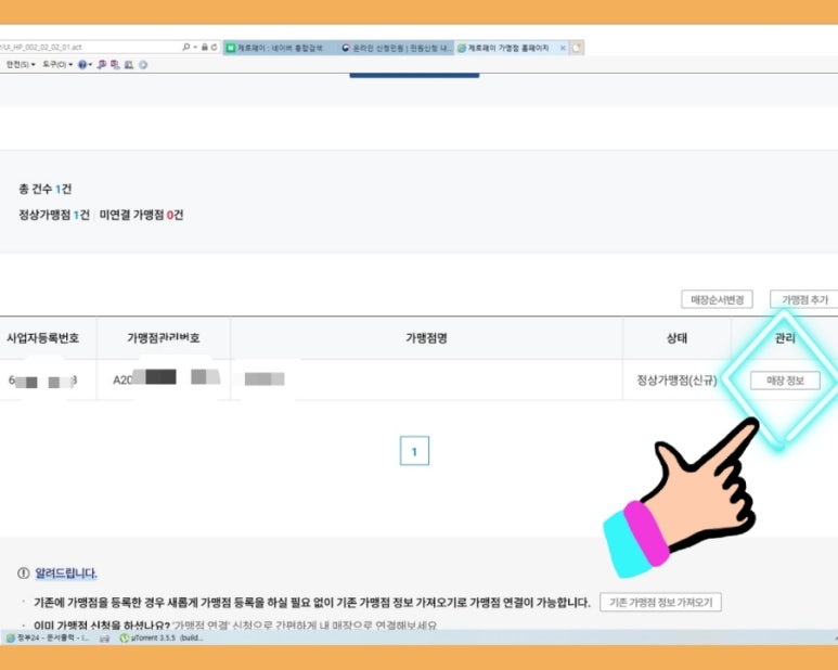 2. 로그인 >>> 가맹점관리 클릭