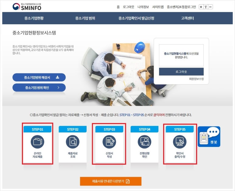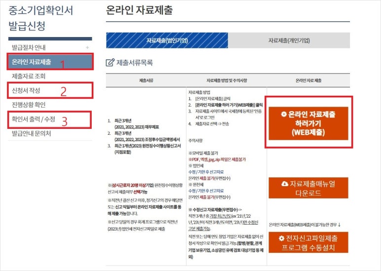 3) 중소기업 확인서 발급