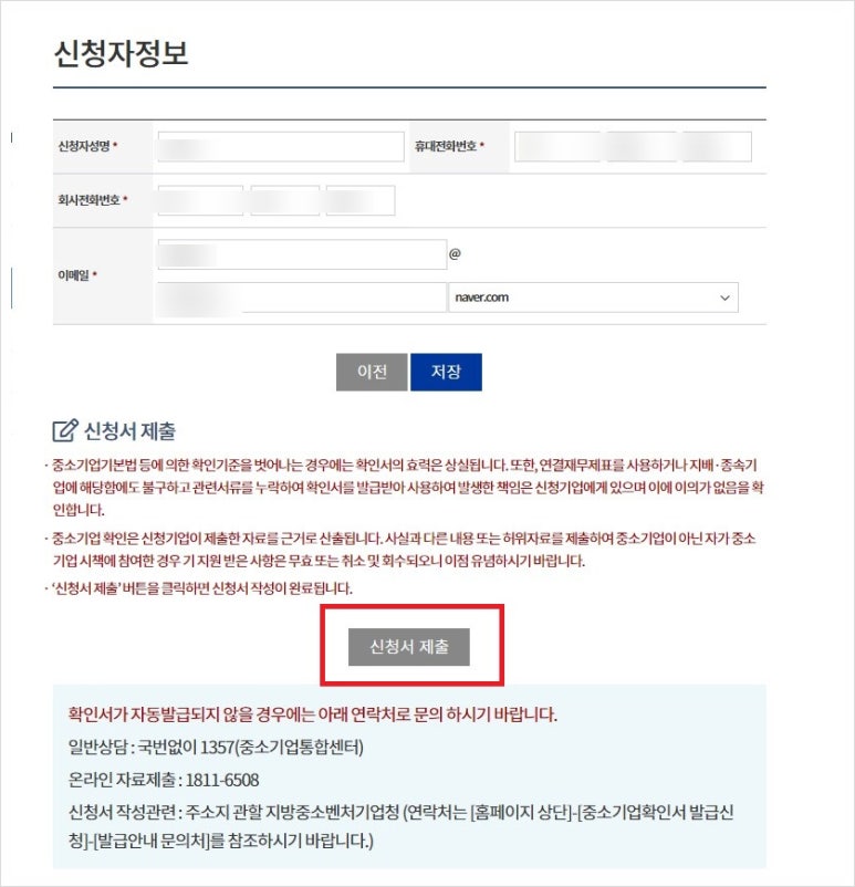 마지막으로 신청자 정보를 입력하고 '신청서 제출'을 선택합니다.
