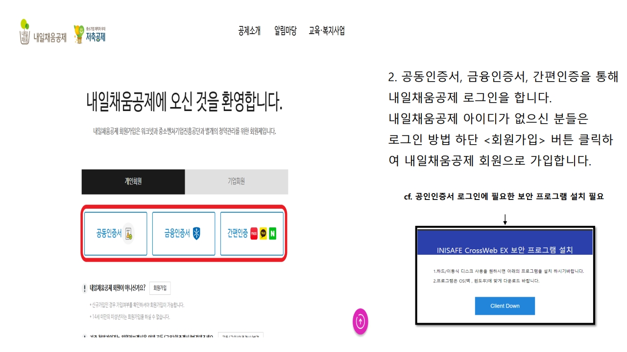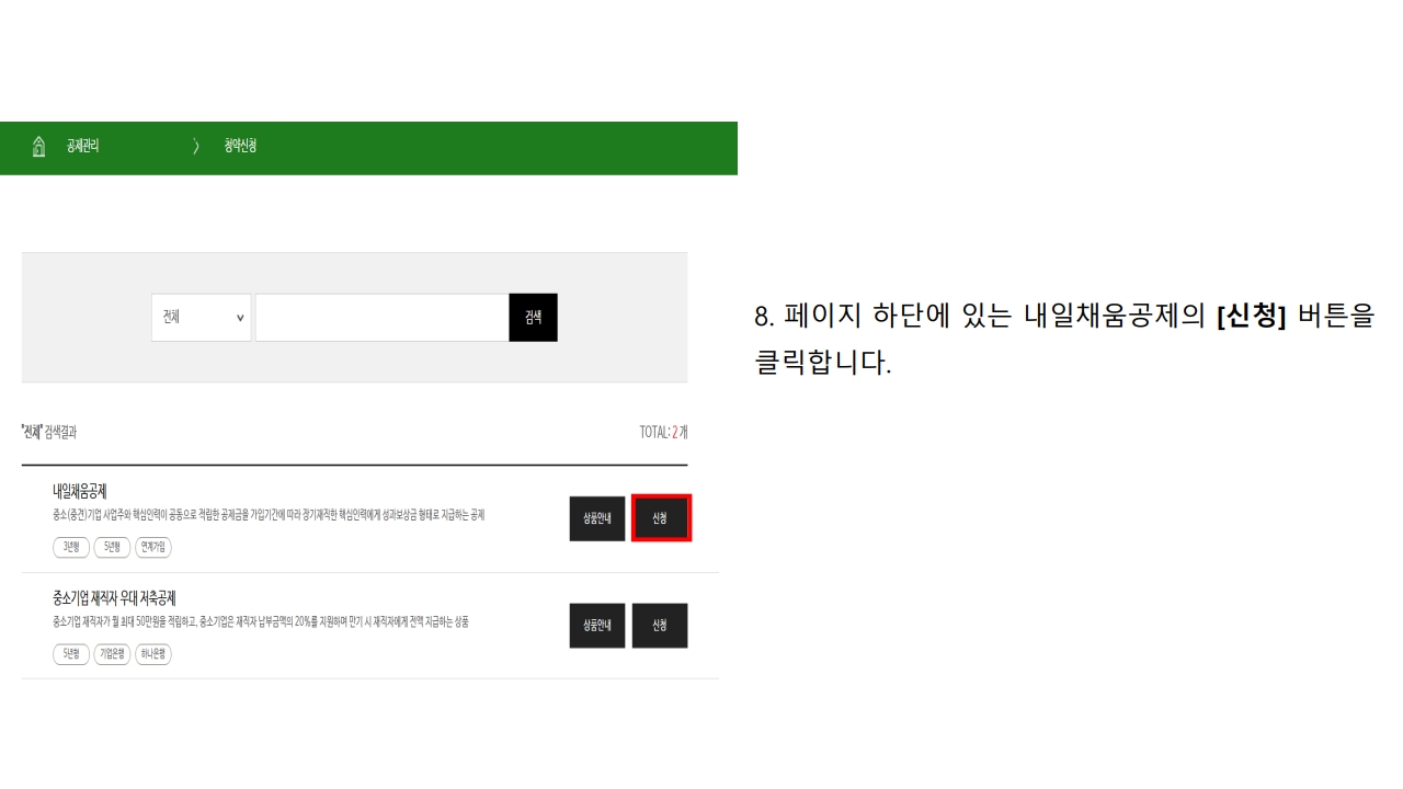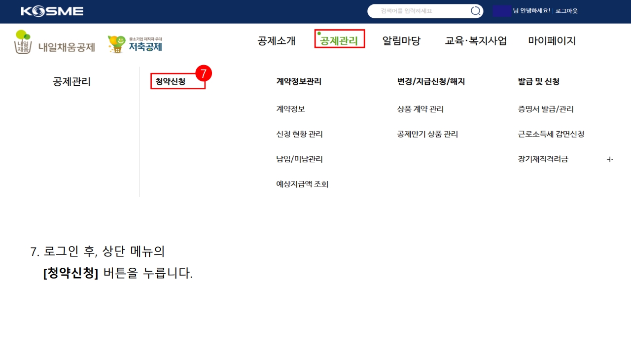 로그인 후 청약신청 선택