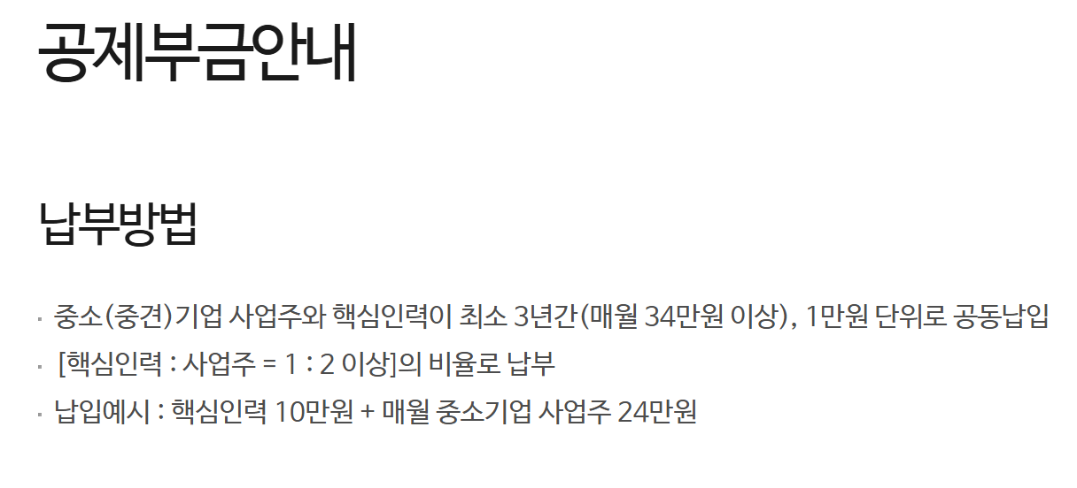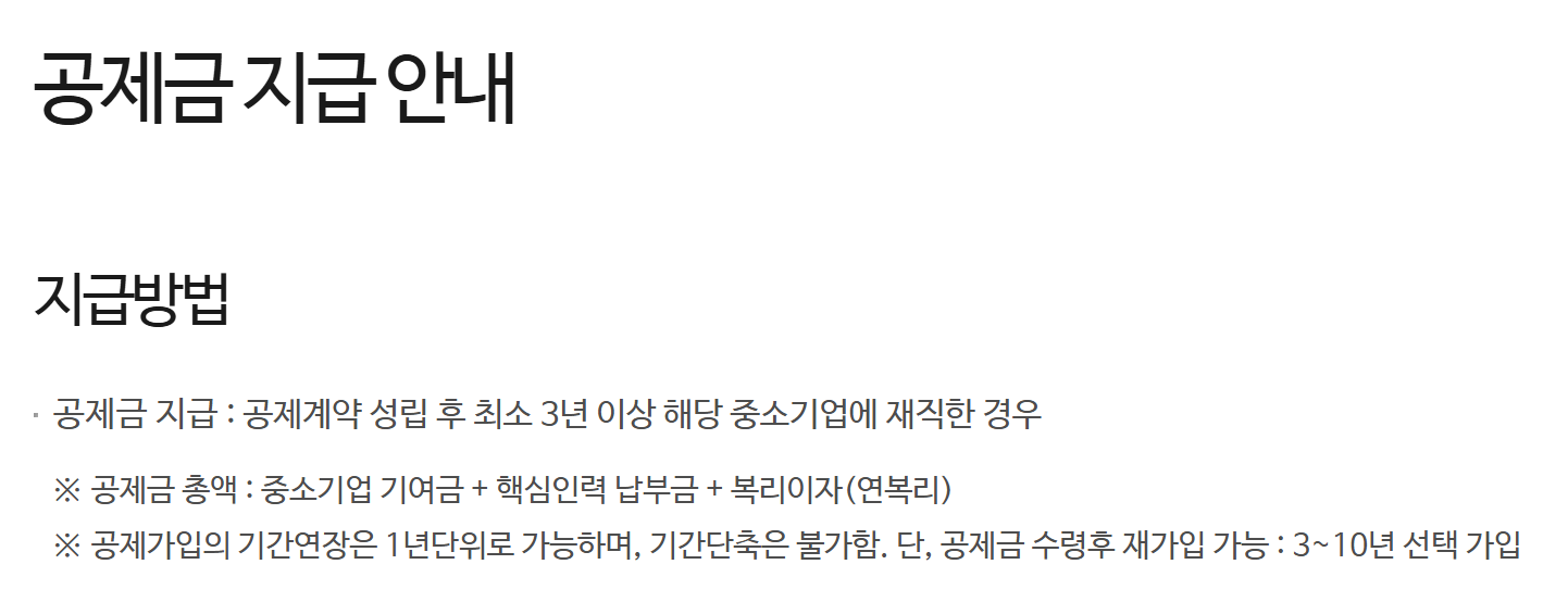 ’중소(중견)기업 사업주와 핵심인력(재직근로자)이 공동으로 적립한 공제금을 가입기간(5년)에 따라 장기 재직한 핵심인력(재직근로자)에게 성과보상금 형태로 지급하는 공제