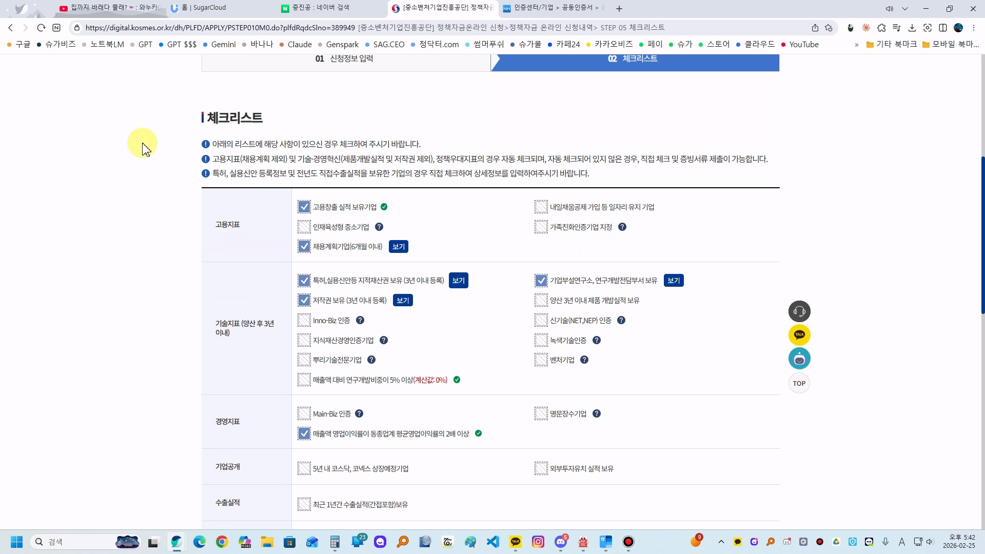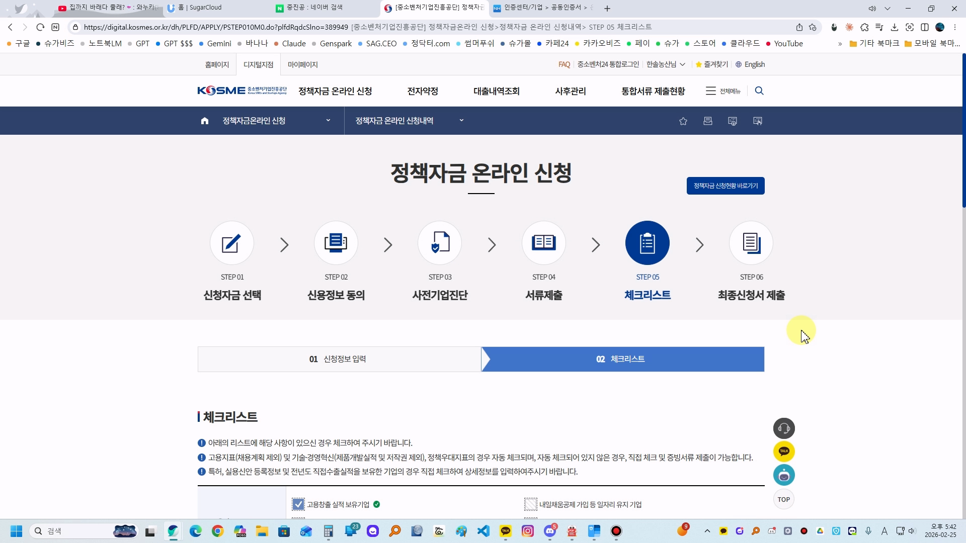 중진공 체크리스트