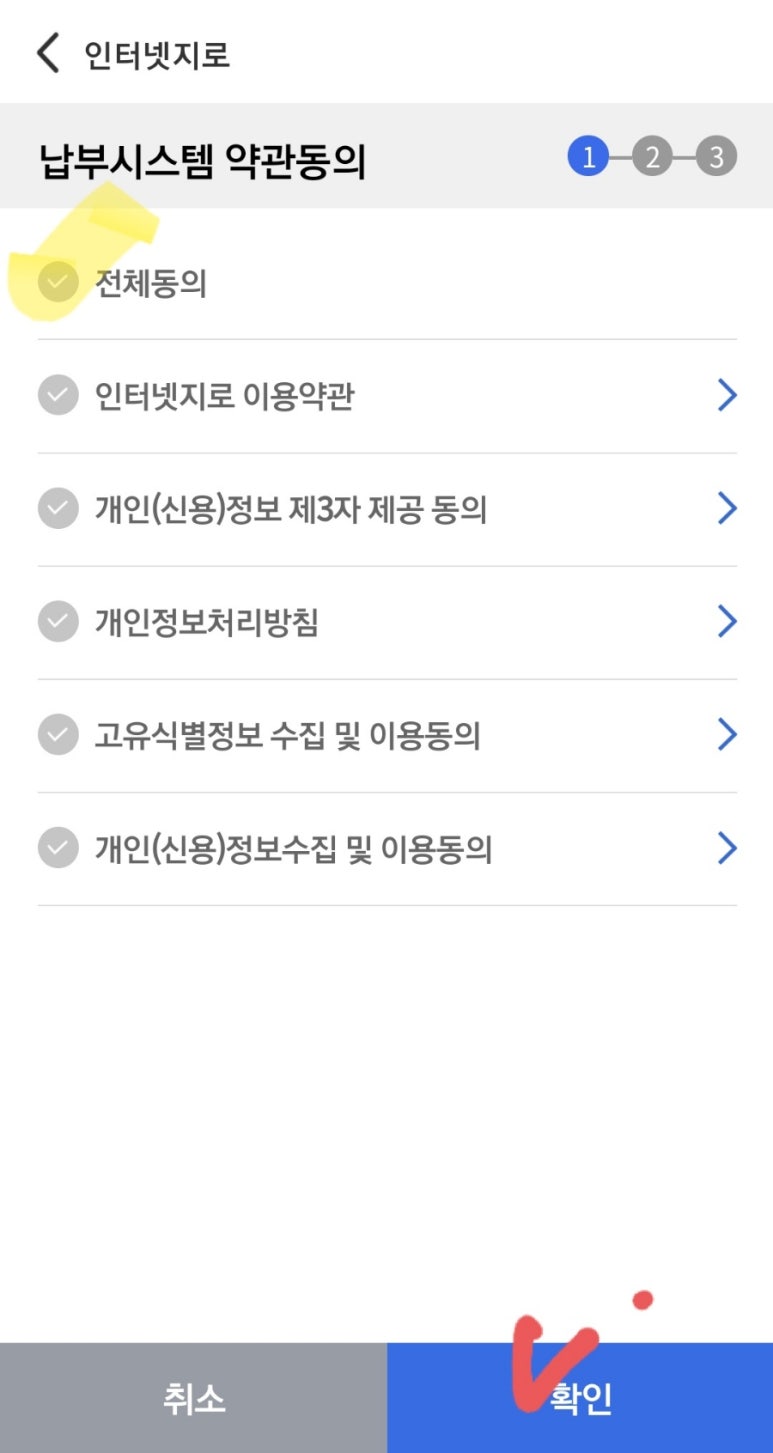 wetax 위택스 인터넷 납부 이용 동의