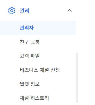 좌측 메뉴 - "관리"