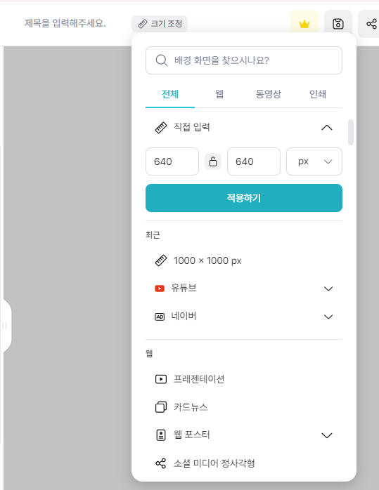 프로필 사이즈가 640X640 이라고 했으니 이왕이면 미리캔버스에서 사이즈를 동일하게 만들어주는게 좋을 것 같았다