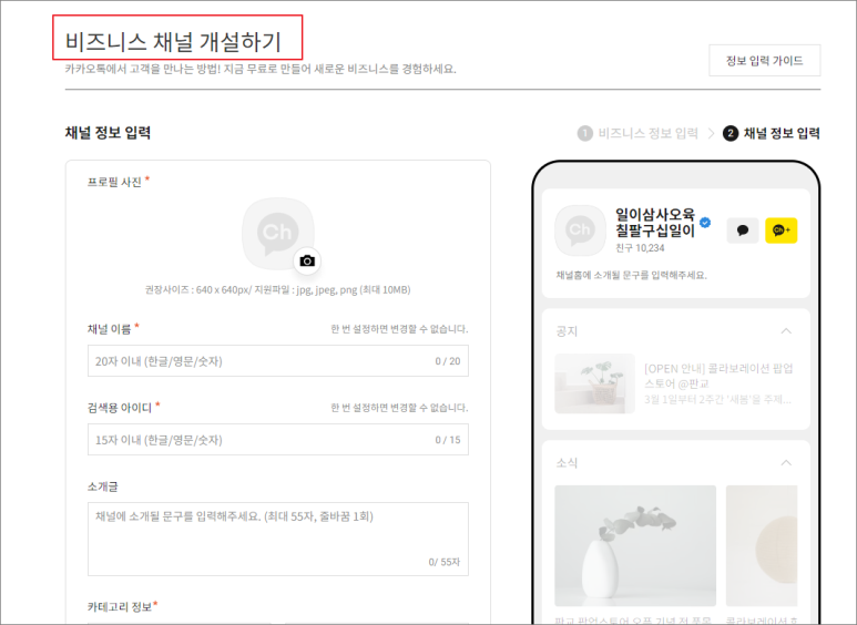 채널 만들기 | kakao business 비즈니스 가이드