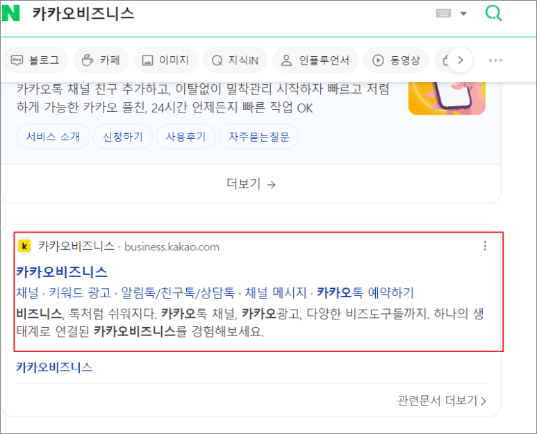 ① 네이버에서 카카오비즈니스를 검색한다