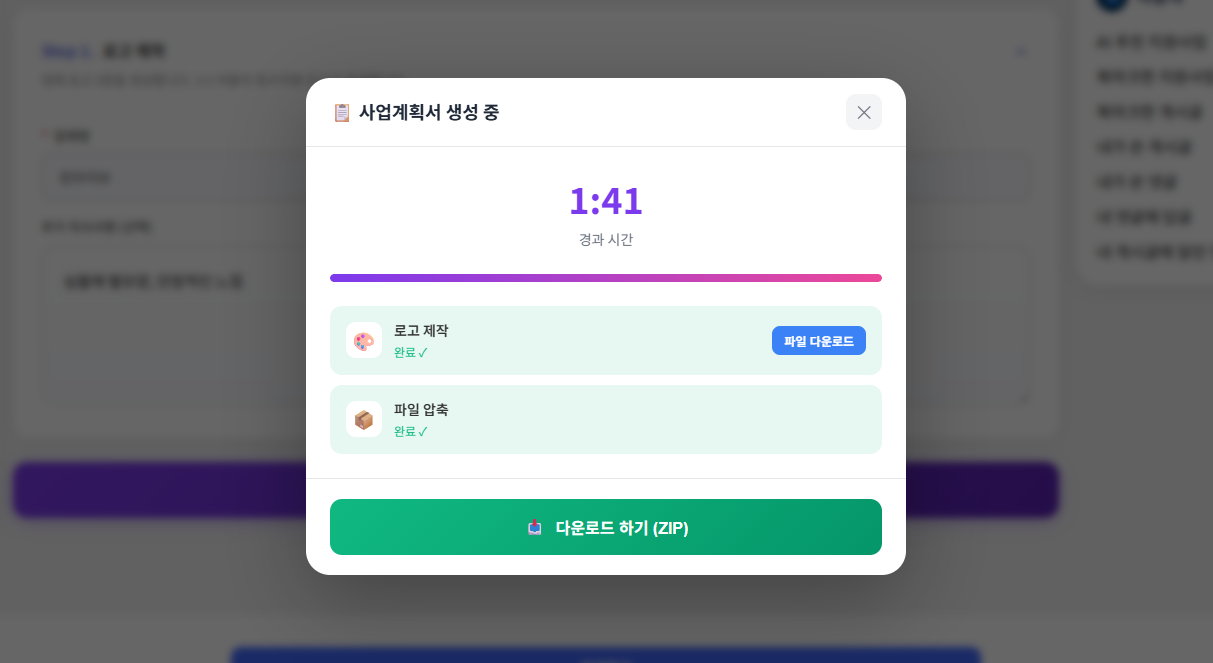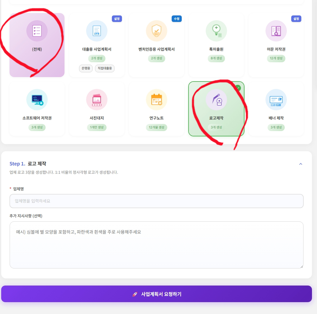 1. 슈가클라우드 홈페이지 접속하기 ↓↓↓ 클릭 ↓↓↓정부지원 100%, AI 자동요약5000만원 정부지원금 받자! AI로 뚝딱!2. 우측 위에 "로그인" 누르기3. 우측 위에 "사업계획서 작성" 클릭4. "로고제작" 클릭5. 원하는 컨셉 입력 (업체명 : 진짜 필수입니다)프차 하시는 분들은 본인만의 식당명, 업체명 등을 적어주세요 :)6. "사업계획서 요청하기" 클릭 후 약 2분 대기파일다운로드 후 압축 풀기★★★ 상표권 등록방법 ★★★추후 업데이트 예정