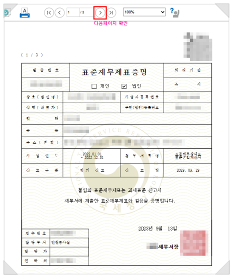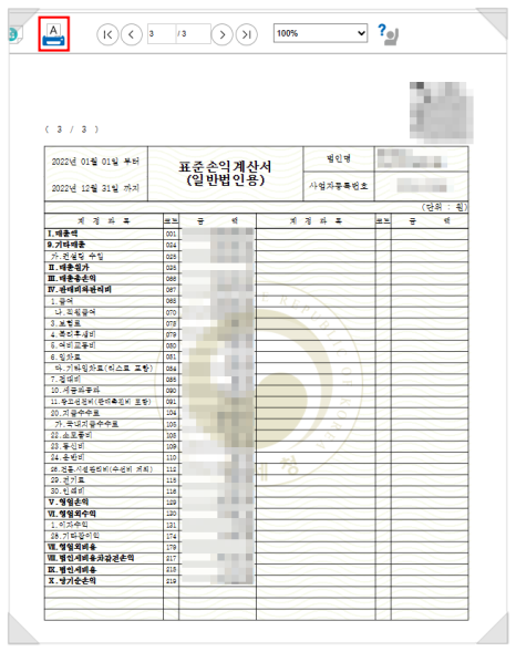 증명서와 표준재무상태표, 표준손익계산서가 잘 발급되었는지 확인하신 뒤