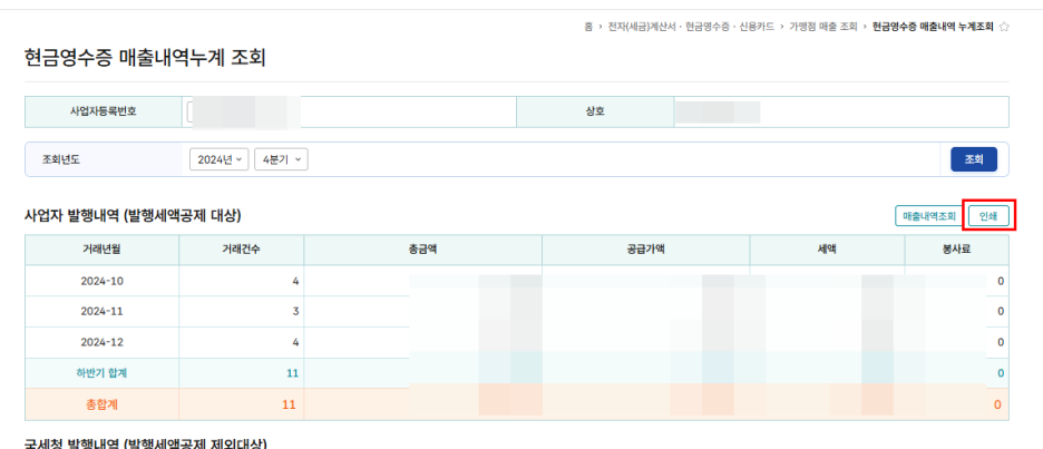 사업자가 여러 개이신 분들은 사업자등록번호 선택을 하시고,