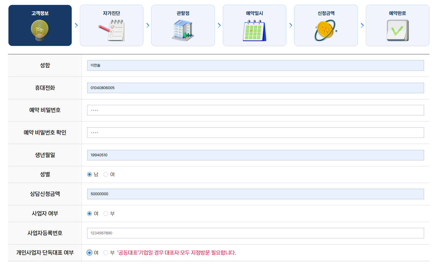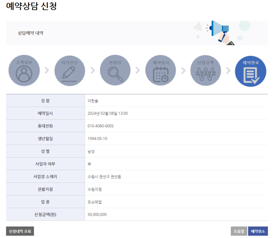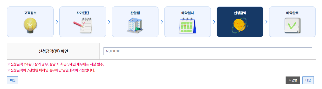 신청금액은 '무조건' 50,000,000~70,000,000원 사이로 입력하세요.
